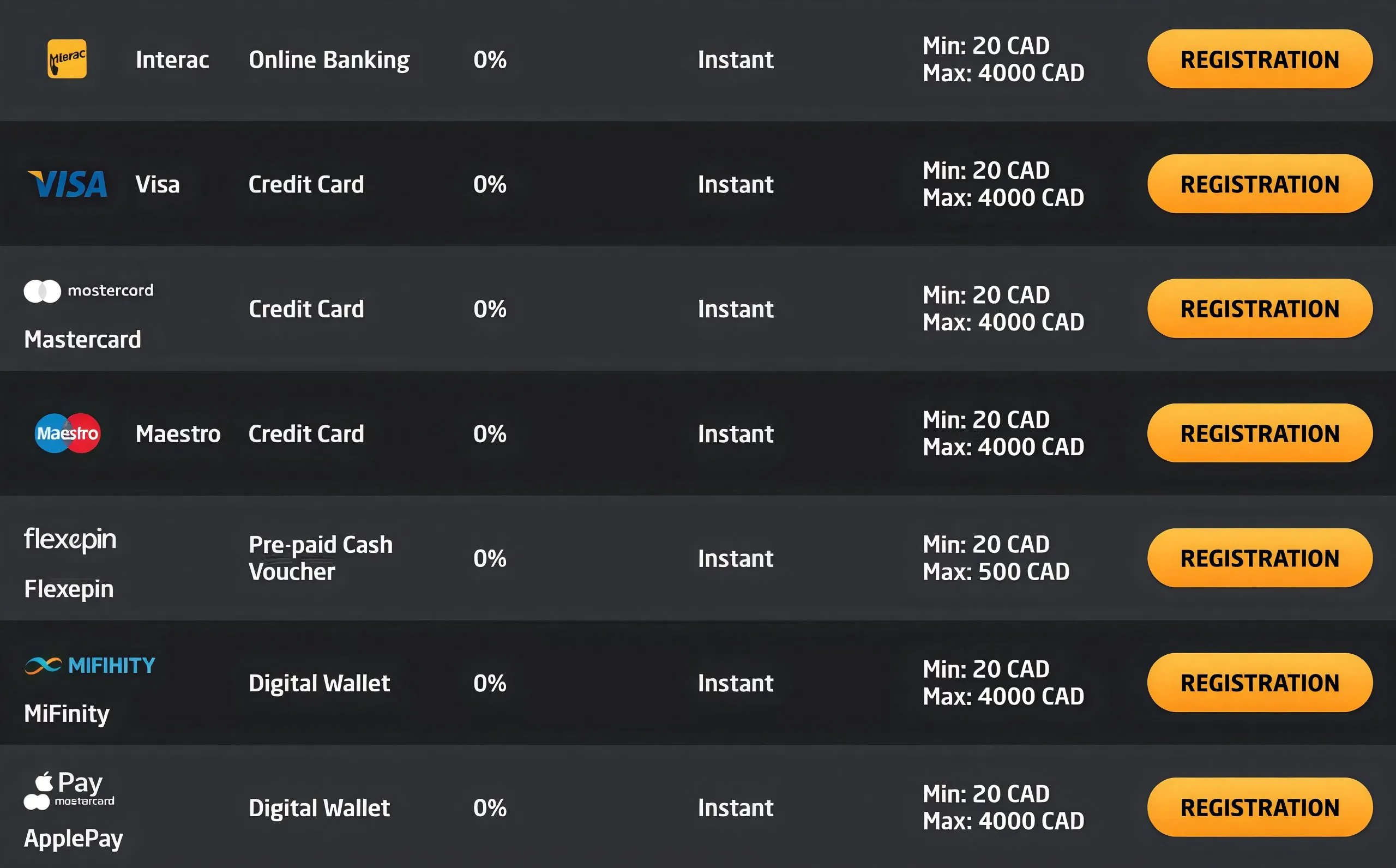 All along at Stay Canada, banking is made easy, fast, and efficient for every player along the value chain. Deposit your funds both flexibly and securely using credit/debit cards, e-wallet services, and bank transfers for the most convenient withdrawals as well. Appreciate the experience of making your money go round credited immediately to allow you to continue with more gambling without waiting.